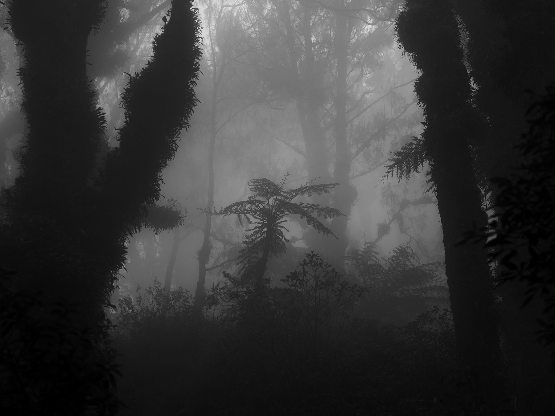 The occasion for Ludwig Spaude’s photographs is a biographical one. His childhood dreams lead him to the cloud forests of Nicaragua, Costa Rica, Madeira, Indonesia, and Colombia, where he finds those images he once dreamt. For weeks, he travelled alone with the camera, oscillating between real experience and his memories. What he sees fulfills his dreams, but also adds something new and unexpected. Added to this are sounds, physical exertions, taking photographs, which requires reflection and decisions.