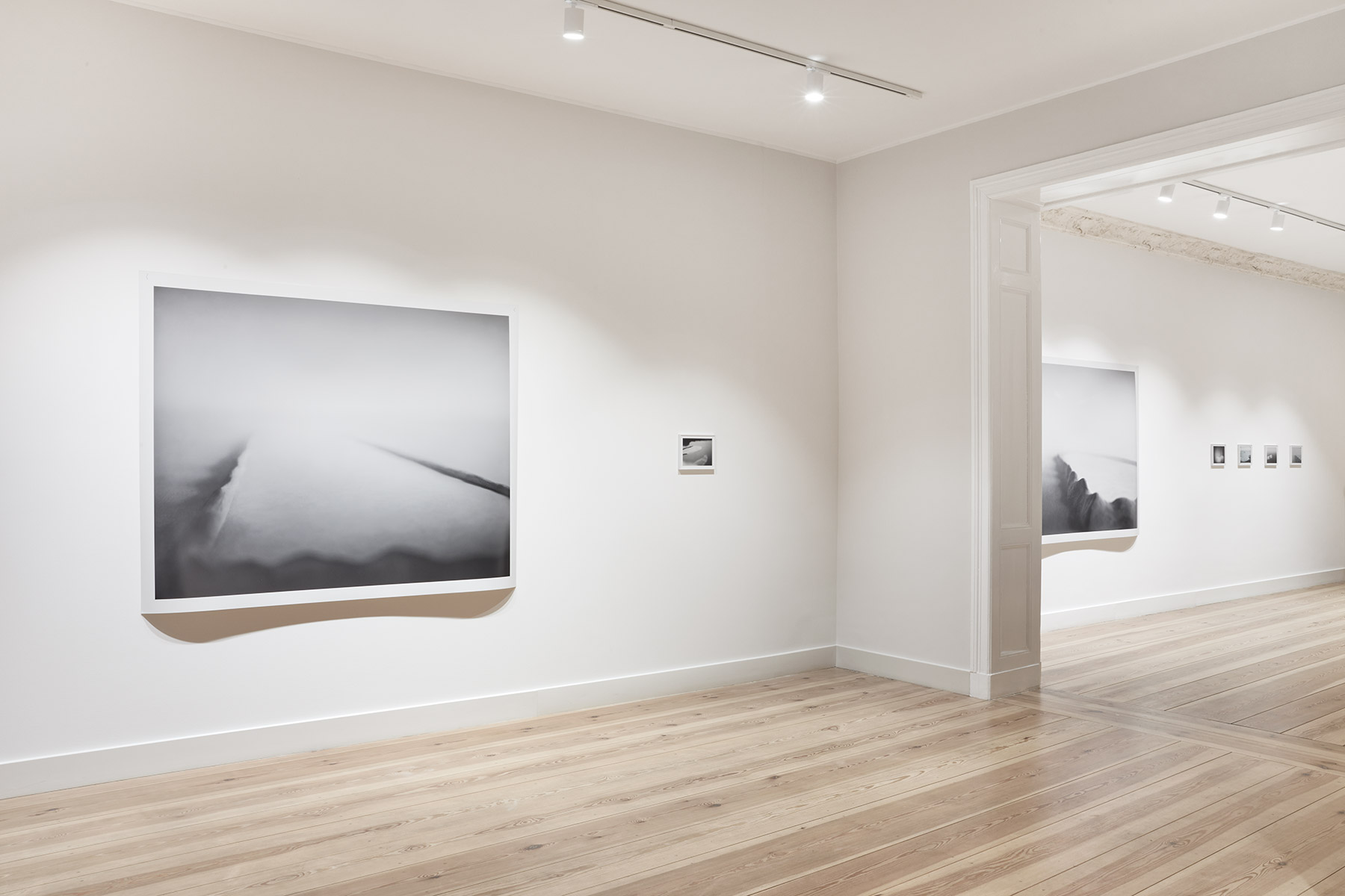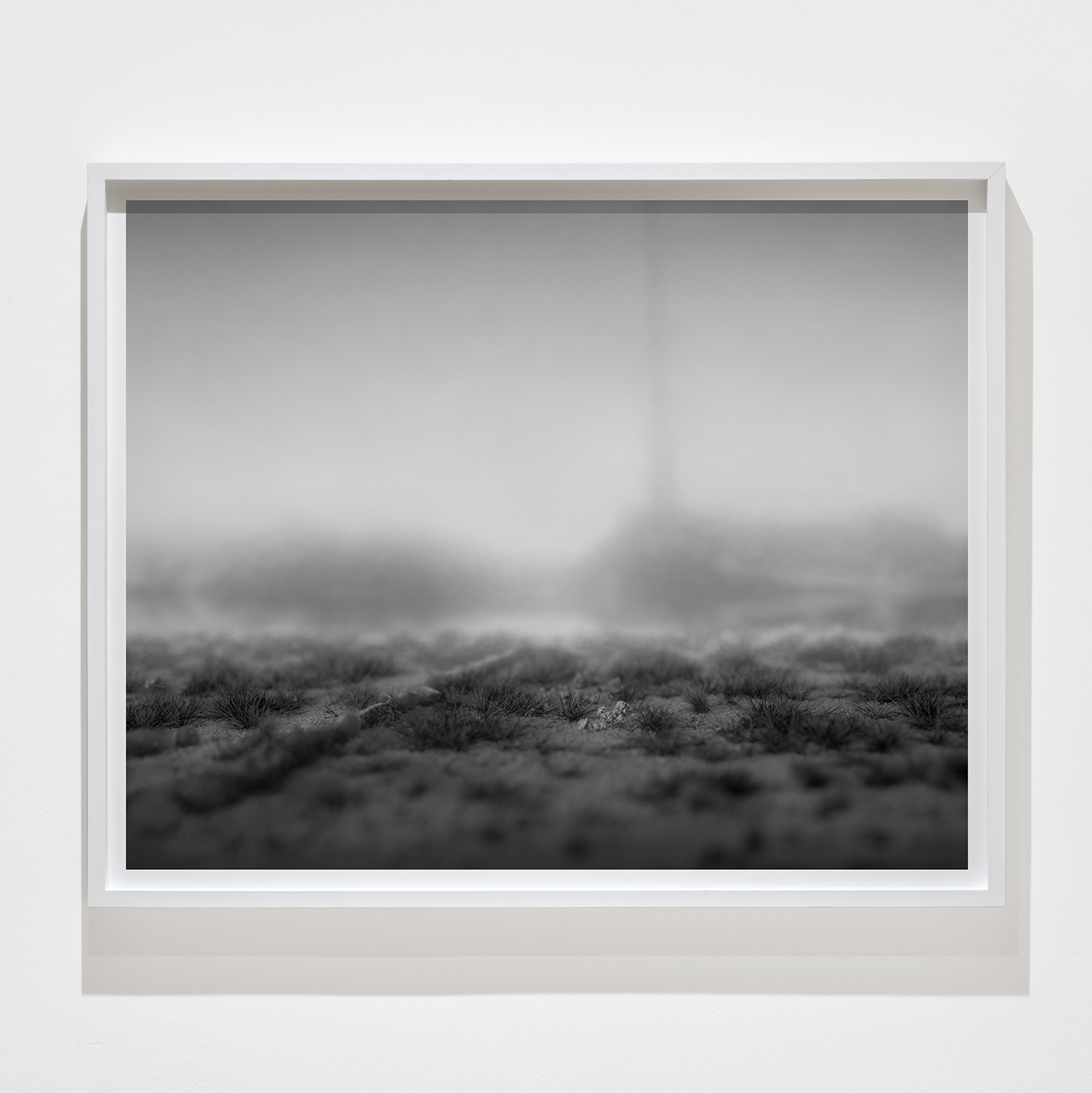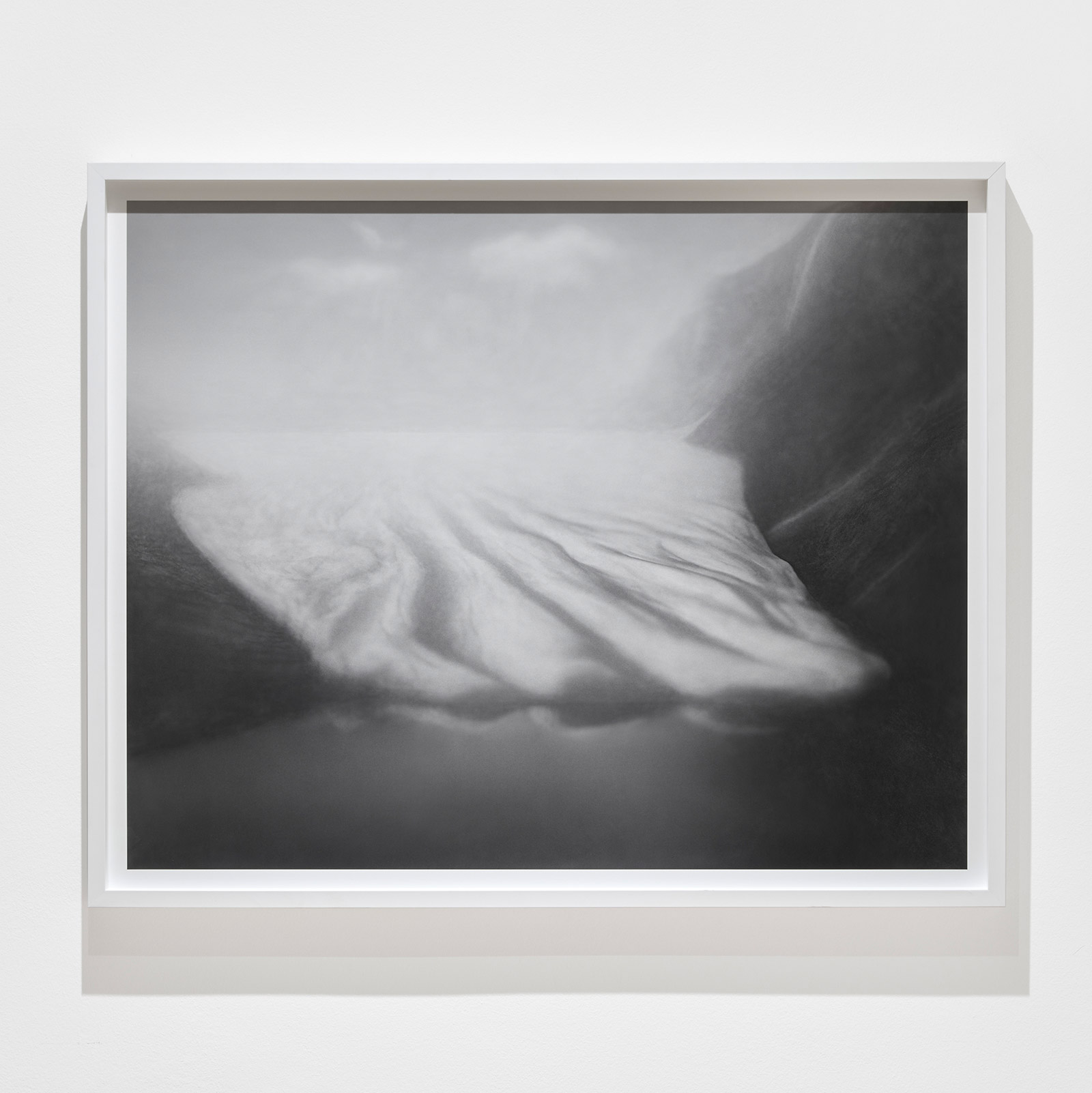 A fog hangs over the mysterious black-and-white photographs and film sequences. They exert a fascination that we cannot escape. Where are these worlds? What are we seeing? Everything seems real and unreal at the same time. Between mountain slopes, we see a glacier pouring into a lake, the moon in the midst of a cloud illuminated by its light, an area enclosed by a low wall, perhaps an ancient site. Blurred and pixelated, we see short films with similar motifs: a lonely iceberg in the water, walls and stones in no man’s land.