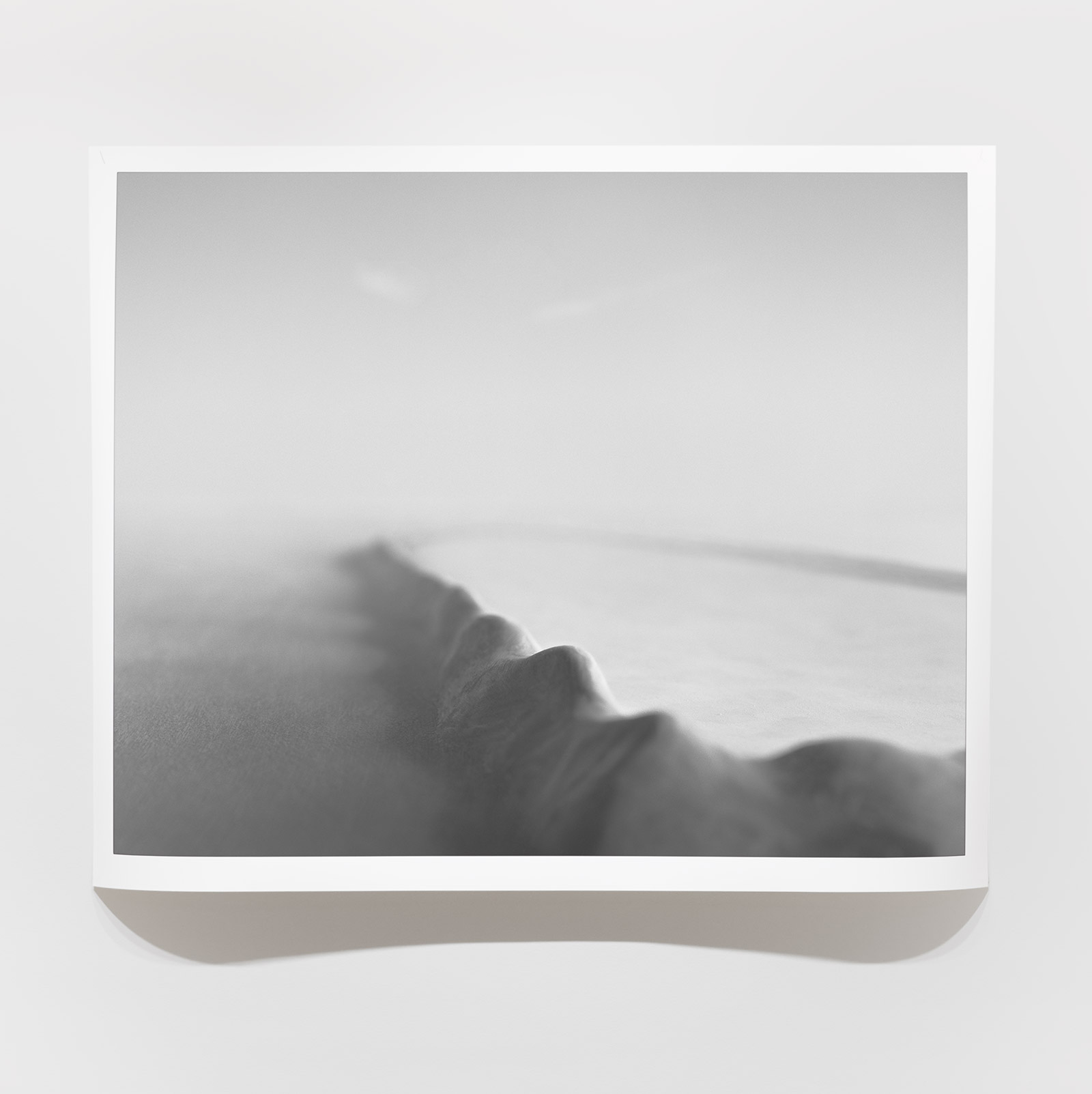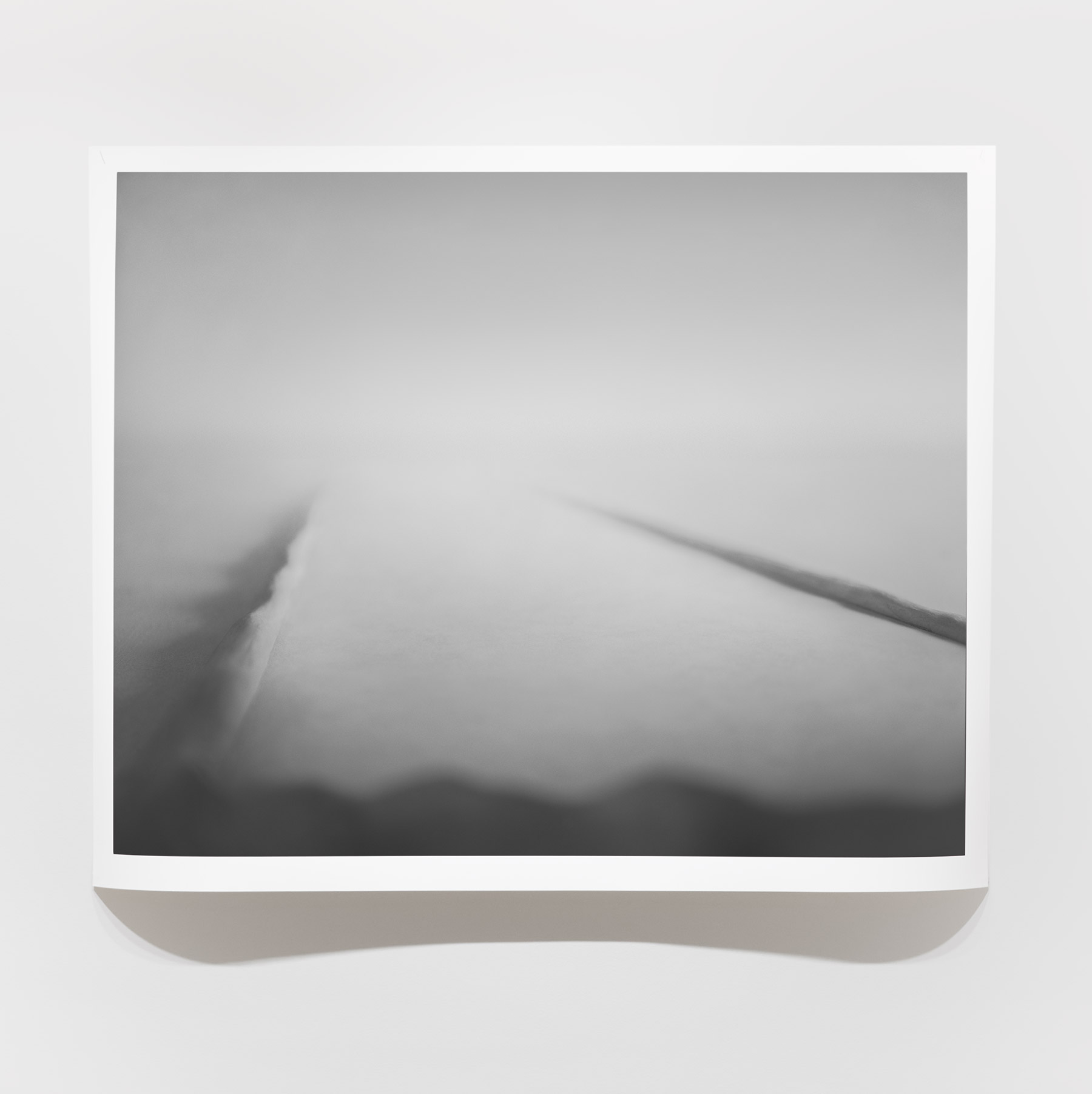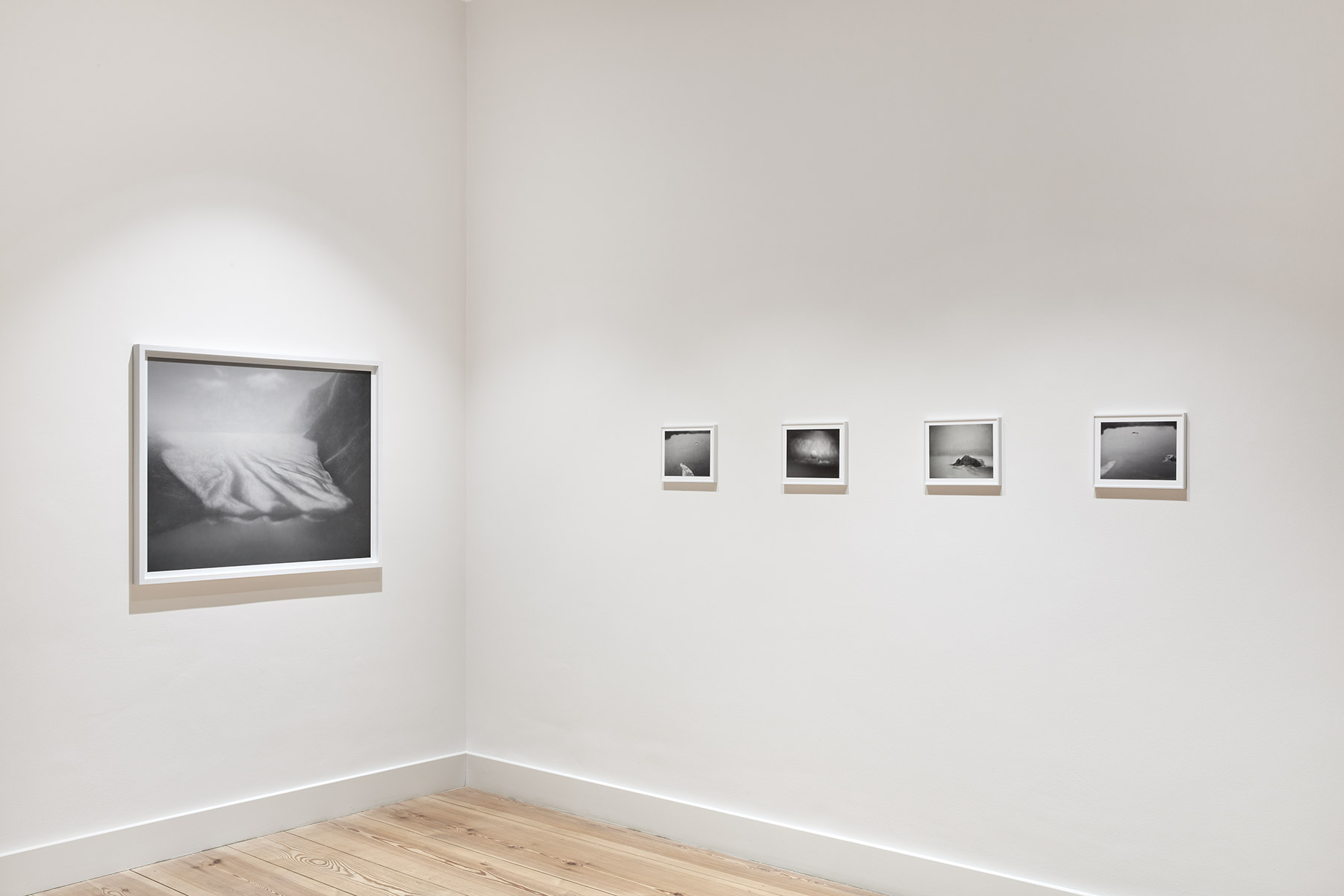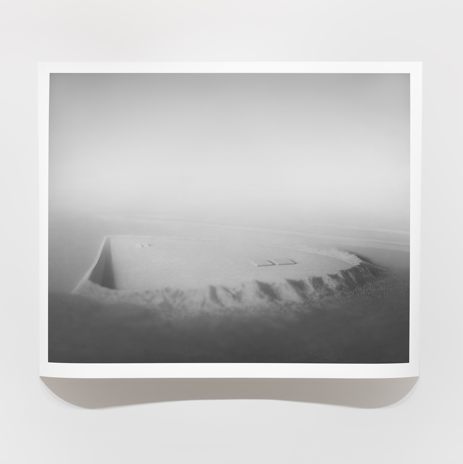 A fog hangs over the mysterious black-and-white photographs and film sequences. They exert a fascination that we cannot escape. Where are these worlds? What are we seeing? Everything seems real and unreal at the same time. Between mountain slopes, we see a glacier pouring into a lake, the moon in the midst of a cloud illuminated by its light, an area enclosed by a low wall, perhaps an ancient site. Blurred and pixelated, we see short films with similar motifs: a lonely iceberg in the water, walls and stones in no man’s land.