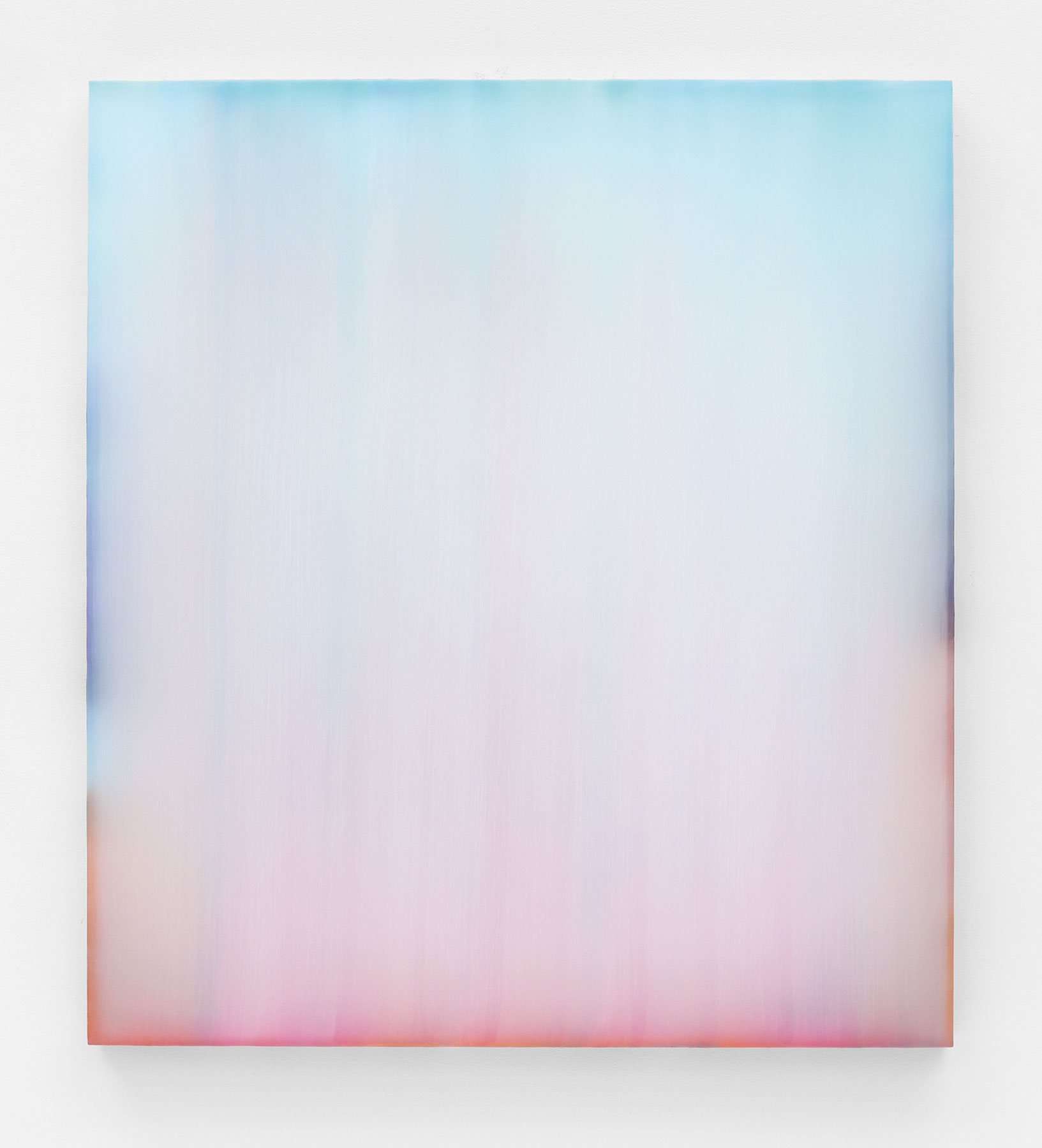 The contrasting colour tone of the paintings’ edges flows into the monochrome pictorial plane and influences our colour perception. The result is a diffusely luminous colour space that represents nothing but itself, while at the same time offering a projection surface for numerous associations. Sometimes it is reminiscent of the colours of the sky.