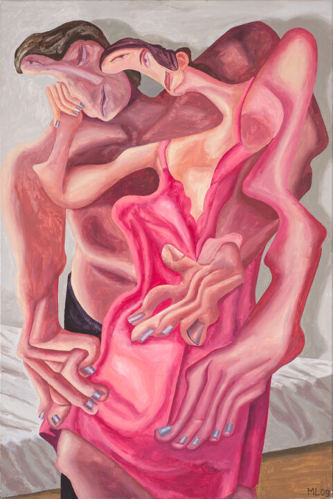 Kate Diehn-Bitt turns her attention above all to humans, whom she portrays with great empathy. The paintings in this exhibition deal with situations of loving attention, for example in the portrait of a woman holding a white dove protectively in her hand, the painting of a young man putting a veil on a bride’s head, or the depiction of a dentist treating a patient empathetically.